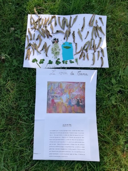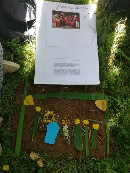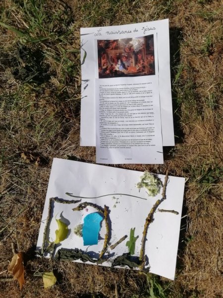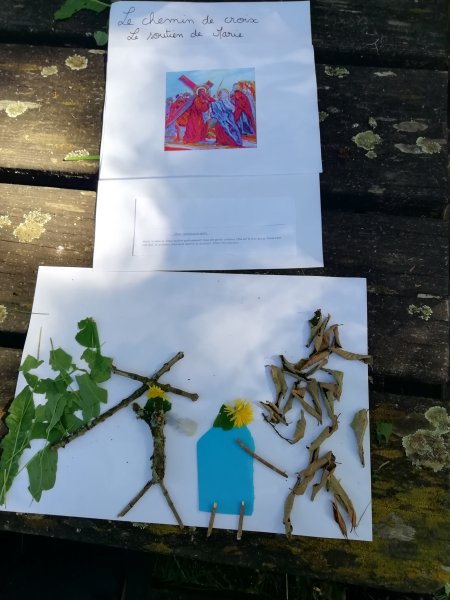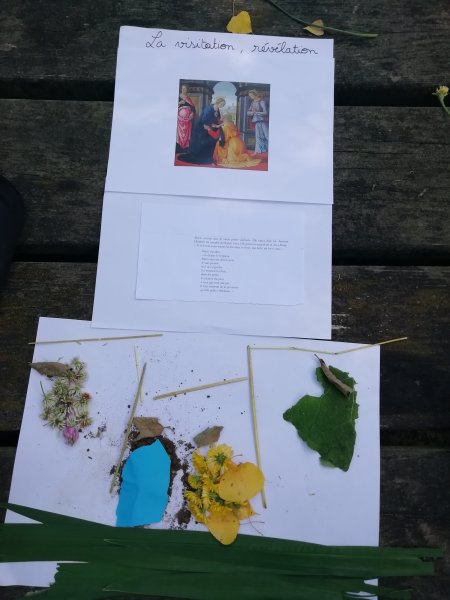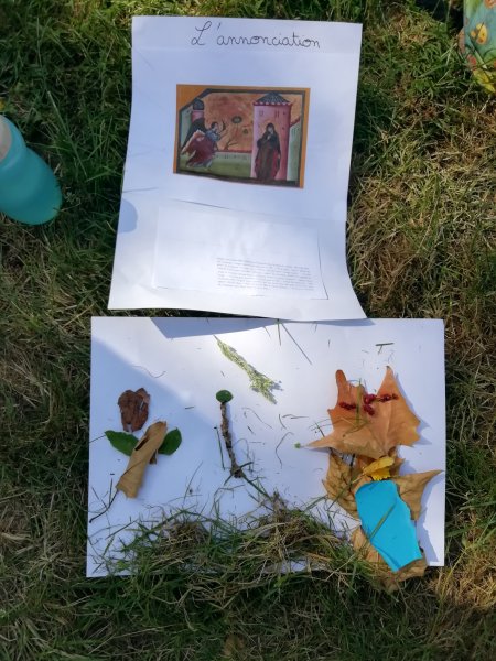 Les élèves du Tablier ont vécu lundi 12 juin un temps fort autour de Marie pour clôturer l’année de catéchèse et de culture chrétienne. Lors de la marche, Les enfants ont découvert un texte et un tableau qui évoquaient des moments importants de la vie de Marie. Ensuite, nous avons associé le texte avec son tableau. Pour terminer, les élèves ont réalisé en land art un évènement de la vie de Marie.