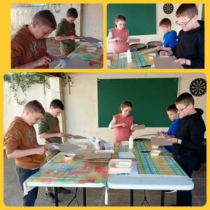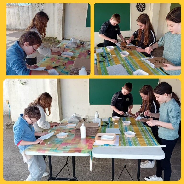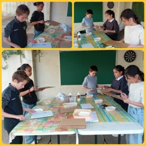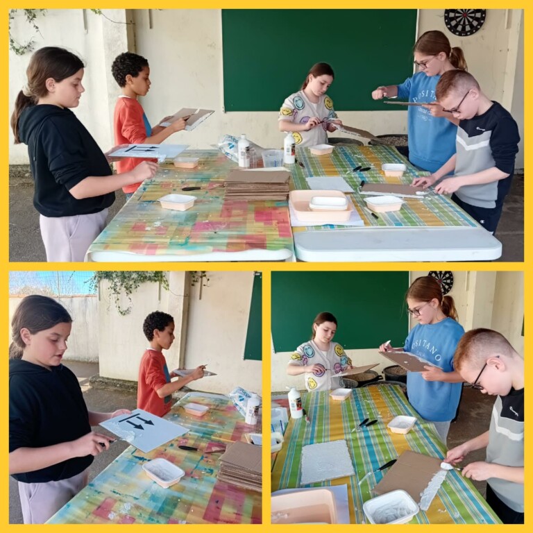 Les enfants ont reproduit l’une des méthodes de l’artiste, consistant à appliquer une pâte composée de sable et de colle sur une plaque de carton. Cette technique unique permet de créer des œuvres texturées, où le sable joue un rôle essentiel dans l’effet visuel et tactile des peintures. L’exercice a permis aux jeunes artistes de s’initier à cette forme d’expression artistique tout en s’inspirant des œuvres vues lors de l’exposition.