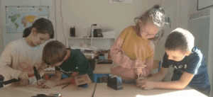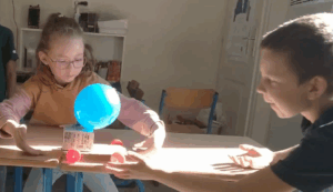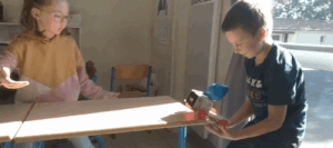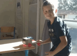 Une fois les modèles terminés, la salle de classe s’est transformée pour l’occasion en piste de course, les voitures à air ont filé en avant sous les encouragements. Découvertes et émerveillement étaient au rendez-vous.