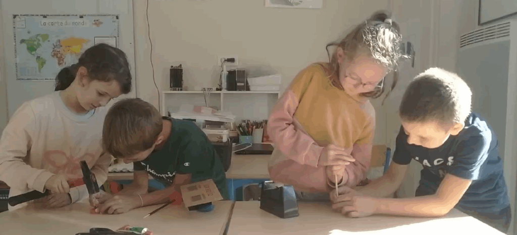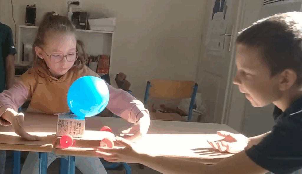 Armés de leur savoir-faire et d’un peu de matériel de récupération — petites boîtes en carton, pailles, bouchons, piques à brochette et ballons gonflables — les 24 élèves se sont organisés en six groupes de quatre. Ensemble, ils ont réalisé et testé leurs montages. Certains ont parfois recommencé plusieurs fois afin de réduire les frottements et de régler la trajectoire avant d’obtenir la voiture idéale.