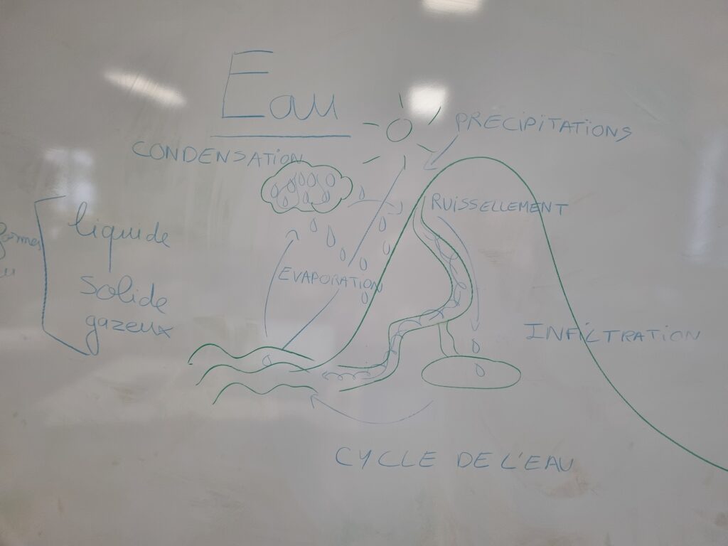 Le vendredi 9 janvier après-midi, une intervenante de la Cicadelle (en partenariat avec Vendée eau) est venue dans notre classe pour nous expliquer comment l’eau se répartit dans le paysage. Grâce à ses explications, nous avons mieux compris le rôle des montagnes, des vallées et des rivières dans la circulation de l’eau.