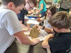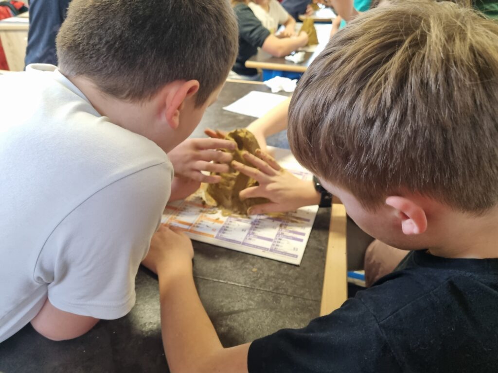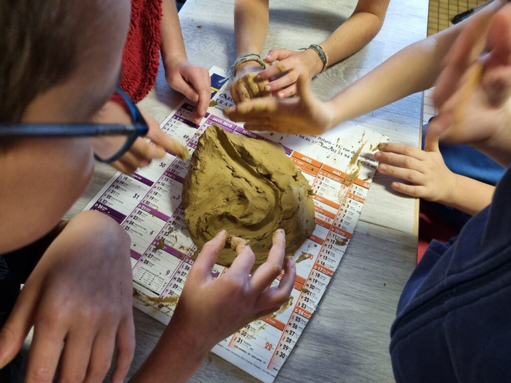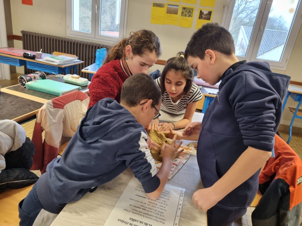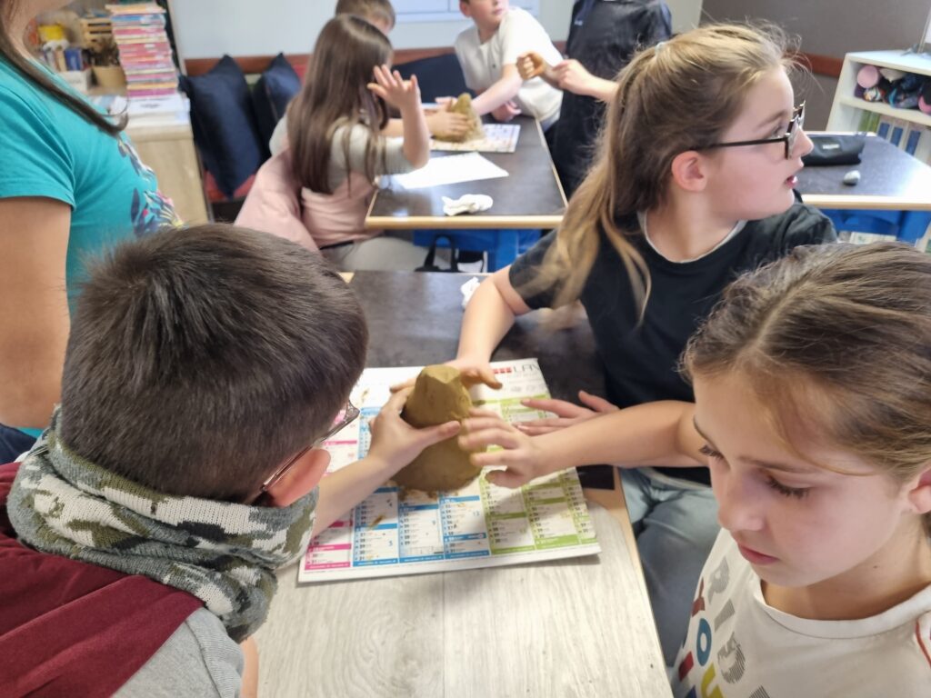 Pour approfondir nos connaissances, nous avons réalisé des schémas afin de visualiser le parcours de l’eau. Ensuite, par groupes de quatre ou cinq élèves, nous avons modelé un bassin versant à l’aide d’argile. Nous avons façonné une chaîne de montagnes, une vallée et creusé une rivière.